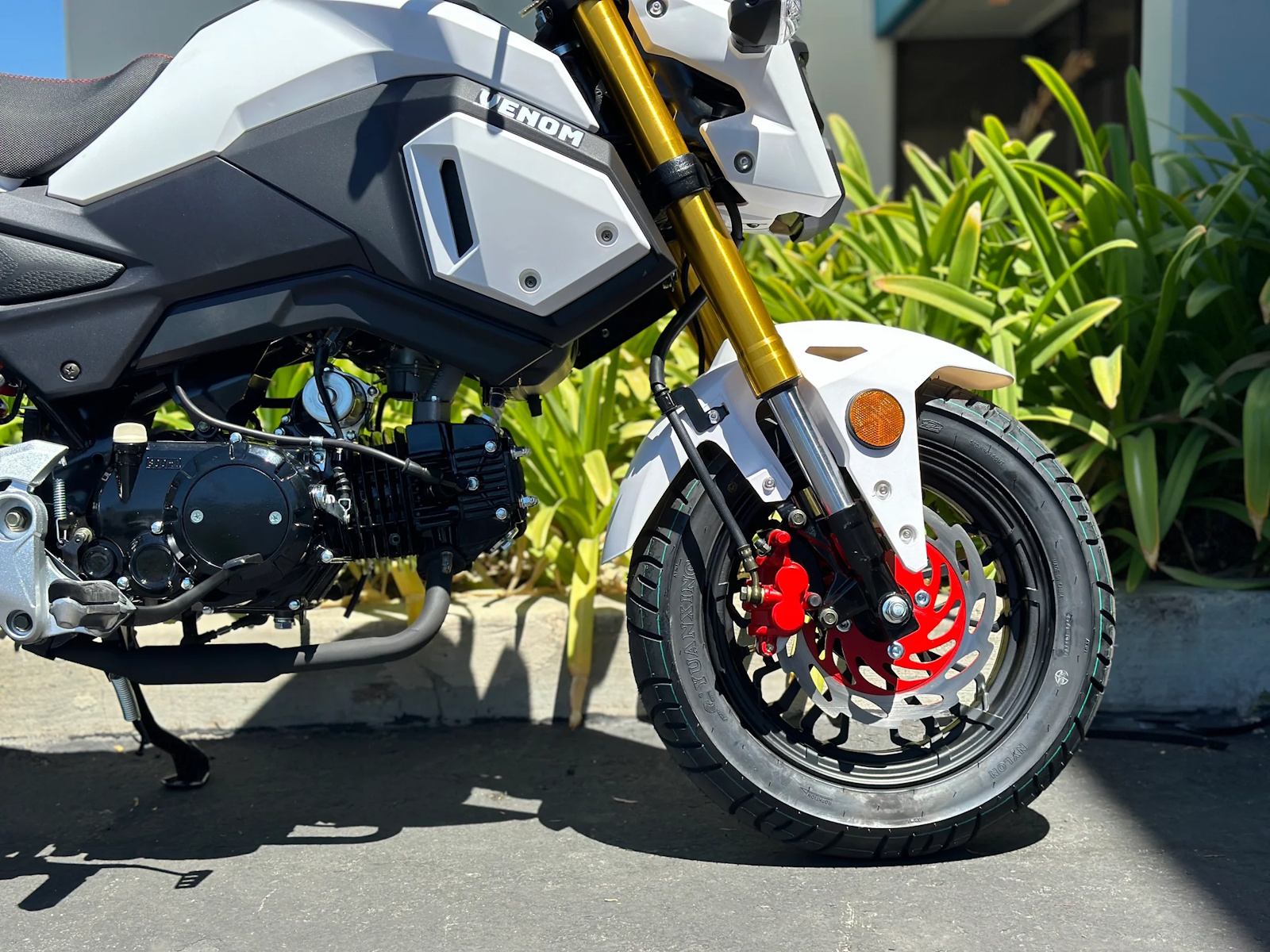 THE X20 125CC FEATURES UPGRADED FRONT SHOCKS WHICH PROVIDE A SMOOTHER RIDE AND BETTER HANDLING AND ABSORPTION FOR COOL TRICKS! FINISHED WITH A GOLD COLOR.