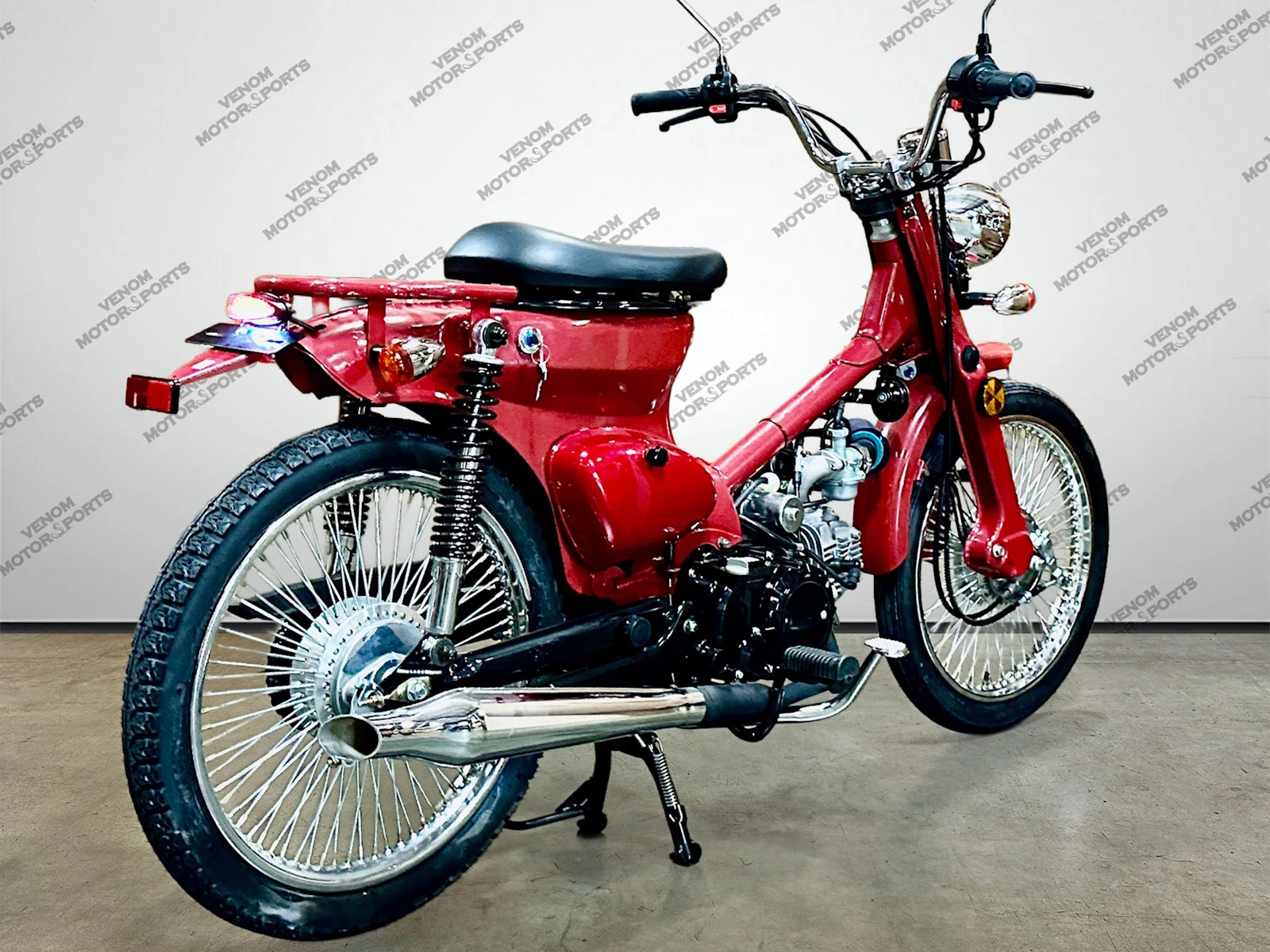 The cub's 125cc engine provides strong acceleration and power, while the 4-speed transmission ensure smooth gear shifting for better control. The engine provides grat fuel economy and throttle response for a more responsive and dyanmiic riding experience.