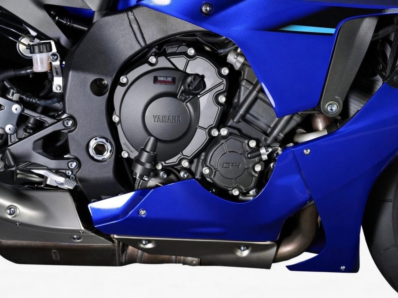 - The YZF-R1's 998cc inline-four-cylinder engine features Yamaha's exclusive crossplane crankshaft technology derived from the YZR-M1 MotoGP® race bike. By equalizing inertial forces at the crankshaft, the CP4 motor delivers a direct feeling of linear torque, giving the rider the ultimate connection between throttle grip and the rear wheel.