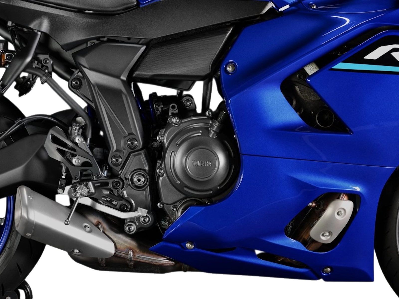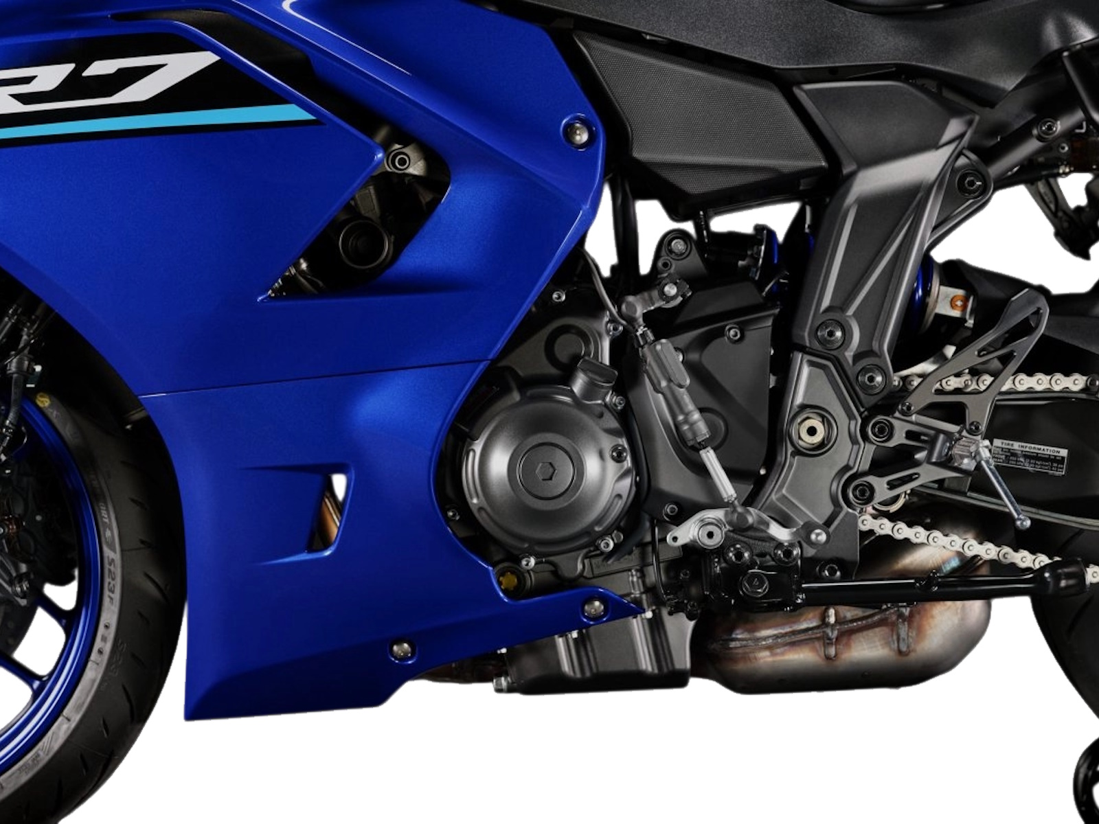 - Contributing to the visceral connection between rider and machine, the new YZF-R7 adopts the same intake duct shape and asymmetrical funnel lengths as the current MT-07, harnessing the bike's induction roar for an enhanced feeling of acceleration from its renowned crossplane CP2 engine.