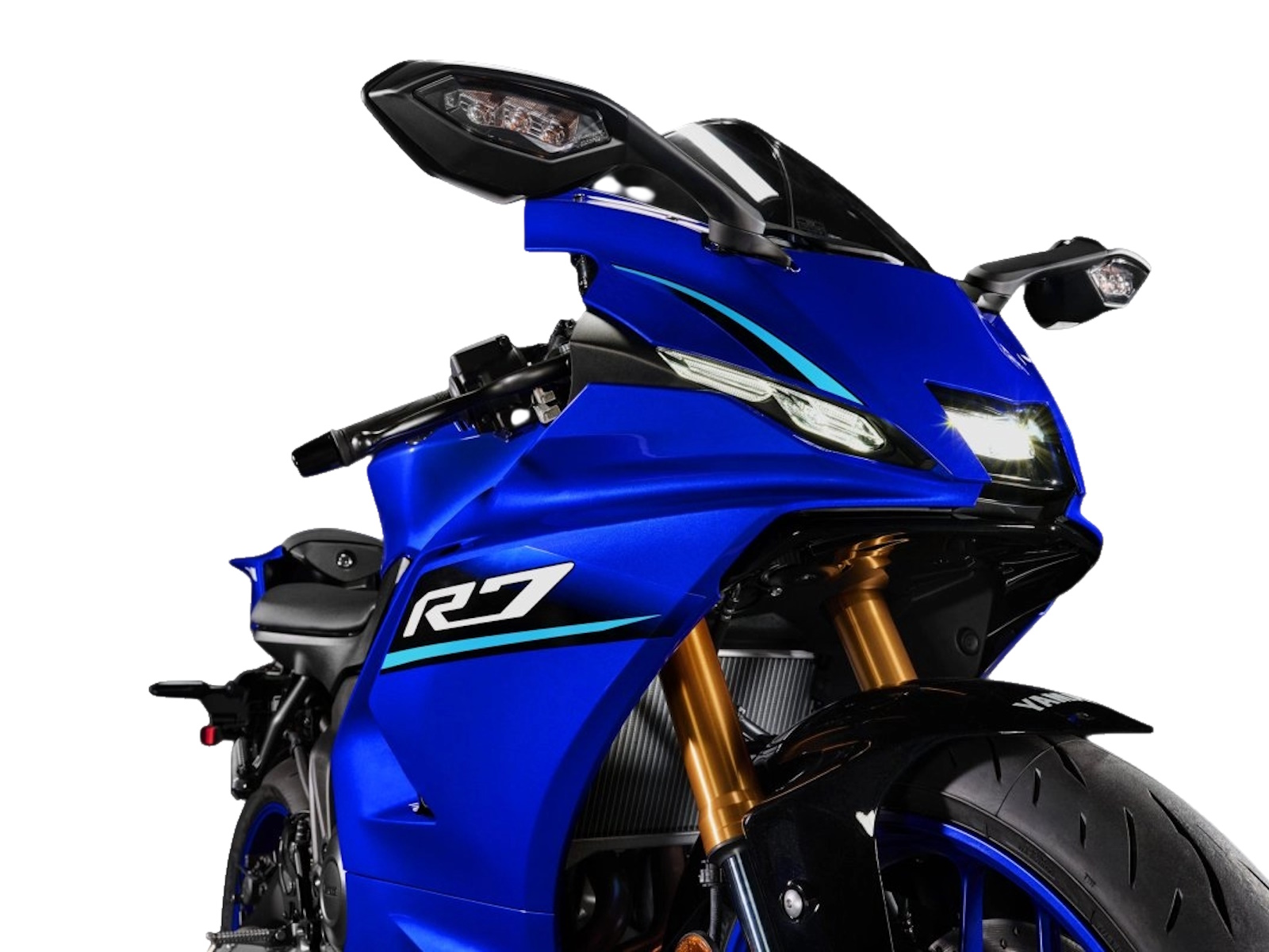 - Sharp new aerodynamic styling fuses beauty and functionality with a compact front fairing design, slim, contoured side fairings, new aerodynamic winglets and LED turn signals now integrated into the rearview mirrors. Minimalist LED headlight and position lights combine with the R7's signature M-shaped duct and tail wing to reflect unmistakable Yamaha R-Series DNA from every angle.